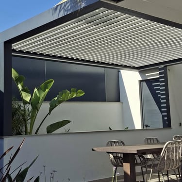 Mapergola conçoit et installe des pergolas bioclimatiques en aluminium, créant des extensions de vie luxueuses et fonctionnelles qui permettent de profiter de vos extérieurs en toutes saisons, avec un contrôle parfait de l'environnement.