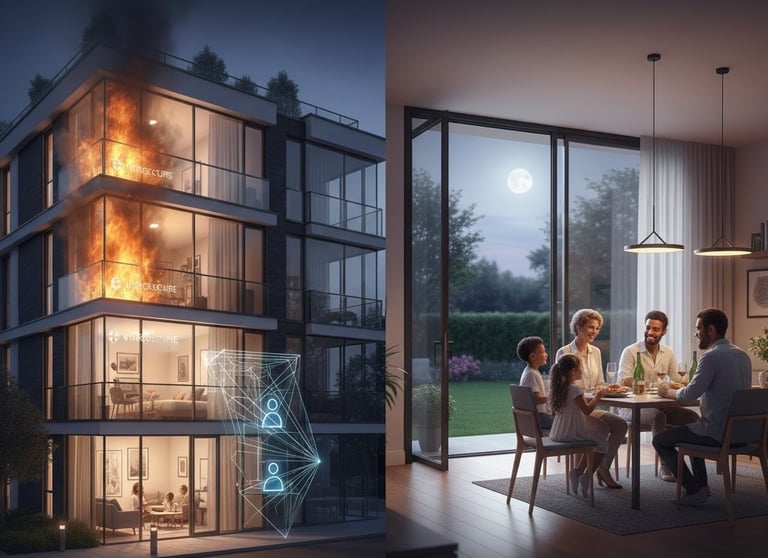 Vitrages Pare-Flammes (Classe E) : Barrière totale contre la propagation des flammes, fumées et gaz toxiques (E30, E60, E90, E120).