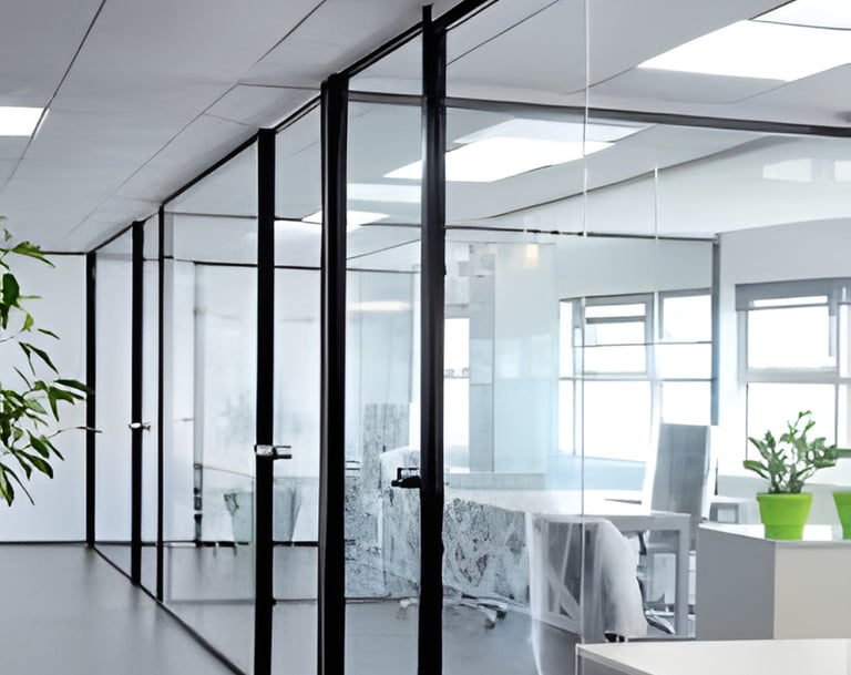 Systèmes de Cloisons Amovibles : Large gamme de cloisons vitrées (simples, doubles, bord à bord VEC), cloisons pleines ou mixtes pour créer des espaces adaptés à chaque besoin (bureaux individuels, salles de réunion, open-spaces).